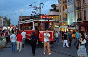 The main drag is astonishing for a number of reasons. It feels like a cross between Paris and Rome. The sheer volume of people, primarily young Istanbullus, who stroll this pedestrian heaven, is overwhelming. Then there is the social mix, the high end cafes and shops next to street vendors selling corn or various trinkets, the Starbucks nestled in alongside cafes with nargiles (water pipes or hookahs), the gaggles of young women, some in headscarves, others in miniskirts and heels---everything emphasizes